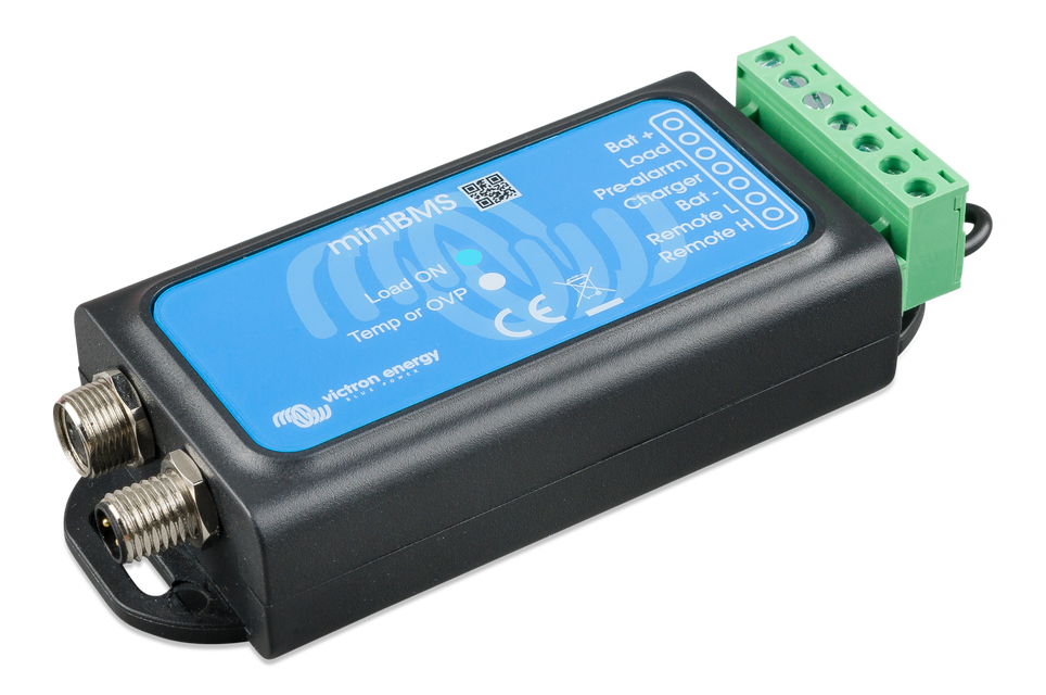 miniBMS可在多个应用中替换E.Bus BMS。但它没有VE.Bus接口,因此不适用于VE.Bus MultiPlus和Quattro逆变器/充电器。miniBMS可用于带M8圆形连接器的Victron Smart LiFePo4电池。