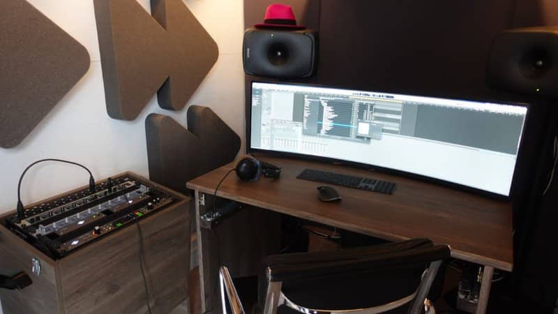 Dodo’s mobile studio has a power hungry set up of mixers, amps and monitors including Arrow, Apollo X8P and Audio UAD-2 Satellite from Universal Audio. Behringer Mixing and Distribution Amp. Native Instruments Komplete Kontrol and Behringer Fatar Keyboards; Genelec speakers and monitors; Phantek cooling; Apple TV, Mac, and a 49″ hi-res curved monitor from Samsung – plus state of the art lighting. Oh, and air-conditioning.