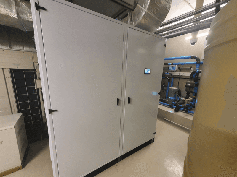 After months of work: evaluating the farm’s grid power consumption, followed by design then build of the containerised battery based power system – the time finally arrived to demonstrate the resilience of the Puiul Dobrogean poultry farm’s 180kVA private power plant …by disconnecting the electricity grid whilst the power consumption was running at 141kW! Nothing happened. In a good way. The load was transferred to the battery-based energy installation without so much as a flicker! The Romanian poultry farm consumes 1.5MWh of energy per day in the height of summer and had been relying on two back up generators to overcome grid failures; but when one of the generators failed to start – endangering livestock – it was clear that there was a vulnerability which could not be tolerated. Ionel Dobre – the owner of Puiul Dobrogean farm – started his business in 2012 and has expanded it steadily. For him this realisation of energy insecurity brought with it an opportunity – to make a financial investment to drastically reduce energy costs at the same time as guaranteeing energy security. The new installation is projected to supply between 93% and 95% of the farm’s energy consumption. (L) Ionel Dobre (R) Ovidiu Stan Ovidiu Stan is the General Manager at Stoneage Energy – who are based in Cluj-Napoca, Romania – and wanted to implement a technical solution which could charge this huge battery bank efficiently, and through all seasons – not just the summer. Based on the results Stoneage Energy had experienced with their previous large installations, they decided to increase the battery charging capacity by adding 12 MPPT solar chargers to the 12 Quattro Inverter/Chargers – to provide a additional 1200 amps of charging capacity. Storage: Over 1.3 MWh in 48V LiFePO4 batteries (Low Voltage). Low voltage was chosen for safety and because it allowed the use of the most robust inverters available. Inverters: 12 x Quattro Inverter/Charger 15000VA – capable of delivering 180 kVA and managing load peaks – 15000 models can actually handle 25000W peaks. AC/DC Architecture: A hybrid ecosystem using 300 kW of Fronius Tauro 100 inverters (AC-coupled) for direct daytime consumption and 12 SmartSolar MPPT 250/100 solar charge chargers = 1200 Amps (DC-coupled) to efficiently and directly charge the battery bank. PV panels: Over 600 bifacial panels rated at 645W (510 pcs on the 3 Tauros + 96 pcs on the 12 MPPTs) offer a total of ≈ 400 kWp. Monitoring: Cerbo GX & VRM Portal . Safety via Loop: The hall’s electrical grid was designed in an underground loop. If a cable is accidentally severed (e.g., by an excavator), power is supplied via the other arm of the loop, ensuring 100% continuity. AI Automations with Node-RED : Node-RED Temperature de-rating and shutdown code The system features several innovations developed by Stoneage Energy engineers specifically for large projects like this one, including: A huge pre-charge & emergency shutdown system, controlled by in-house software for controlling and monitoring more than 100 parameters of the whole system. Rapid shutdown & pre-pre-charge: For complete system disconnection in the unlikely event of any fault. Dynamic Power Balancing: For large systems when solar production is low and/or the grid is weak or unstable. Battery protection mode: Maintains a useful power reserve for power outages or a low next day power harvest forecast, consumption, and grid energy costs. Ionel says “Energy is monthly business cost. Once you install a system like this, that cost becomes an investment – this equipment is built to last 15-20 years.”