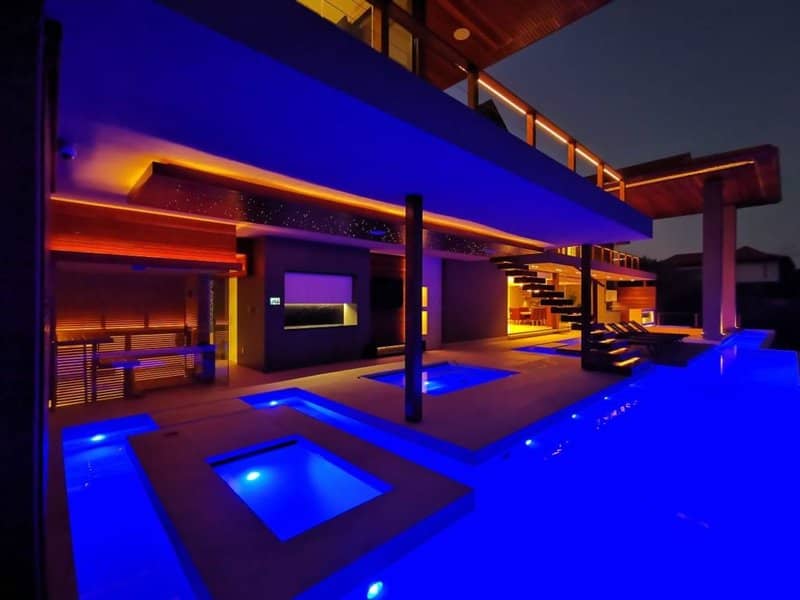 The Reekie home in Zimbali has a 41.5kWp solar array on the roof split between AC and DC coupled strings. The DC coupled bank feeds a 100kWh Lithium battery and 45kVA of Victron inverter power. The AC coupled bank feeds a 20kW three-phase Fronius inverter which is controlled by the Victron system. Backup power can be provided by a 60kVA three-phase Diesel Generator.