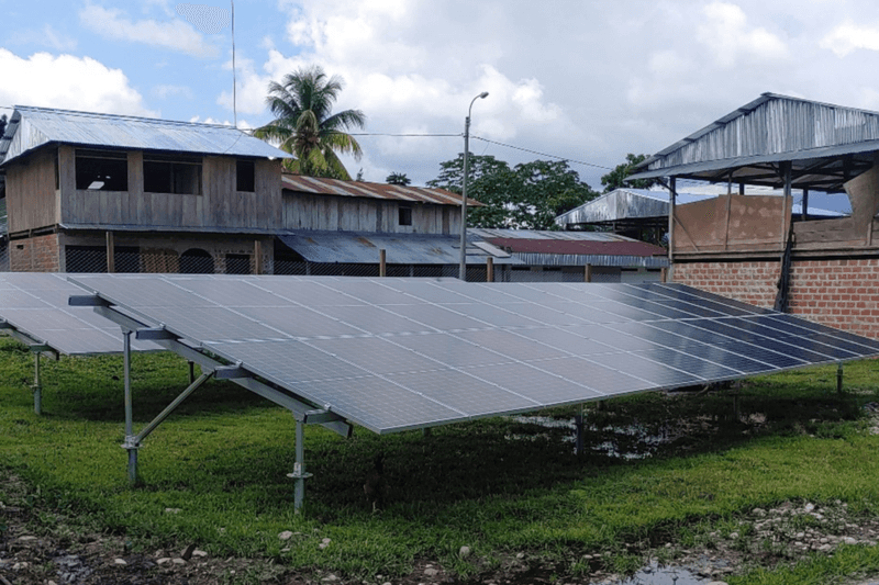 And finally, a community-benefit installation in the oil-rich town of Bretaña. The oil company Petrotal agreed to fund a solar power installation for the community market as a social contribution for the largely indigenous population.