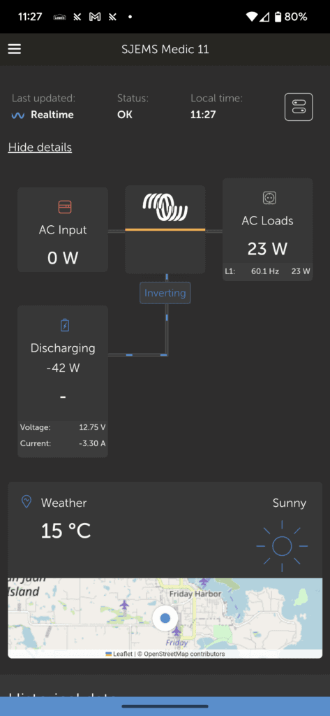 San Juan Island EMS have recently taken delivery of an electric Ford 150 truck – the new Ford Lightning. Paul’s truck, for example, would be able to replenish the Ford Lightening battery from 0% to just about 50% State of Charge – if a remote recharge were ever required – without de-tasking the emergency vehicle!
