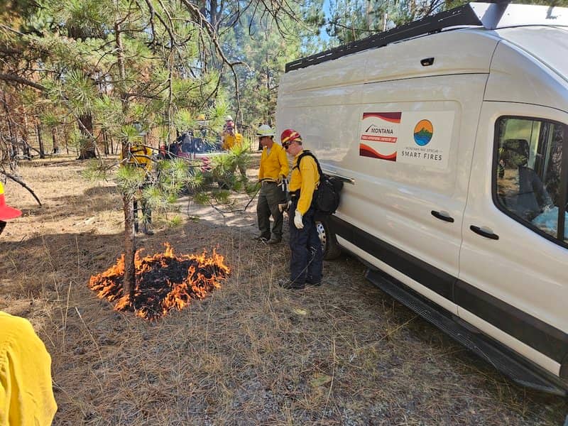 It’s late fall in Montana, and thick plumes of smoke rise from a forest fire whilst students and staff from the University of Montana FireCenter stand with rakes and water hoses. He and his team are collecting emissions data from a 30-meter controlled fire (or ‘prescribed burn’) line using a state-of-the-art mobile air quality research lab.