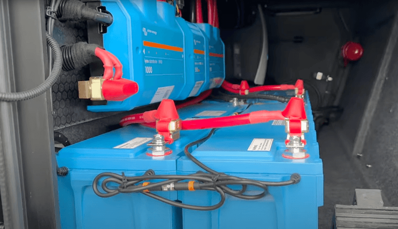 Solar Energy is harvested by two SmartSolar MPPT 150/35 solar charge controllers which store power into four Lithium NG Batteries rated at 51.2V 100Ah – offering 20kWh of stored energy. (The latest NG Next Generation batteries, by the way, feature an integrated shunt, and advanced communication which allows up to 50 batteries to be combined in the same bank. The mandatory battery management system for NG batteries is the Lynx Smart BMS NG.)