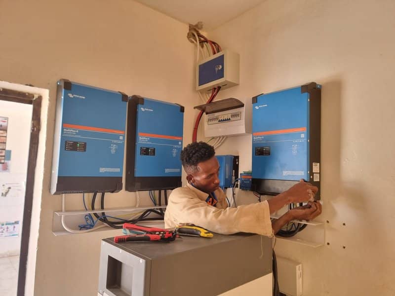 Lycée Iman is a school in Nouakchott, Mauritania, with over 500 pupils from nursery age to seniors. The school’s management decided to invest in a multi-faceted educational sustainability initiative which would help its pupils to learn about solar energy, water sustainability and waste management. The most ambitious part of the programme was for the entire school to become self-sufficient in solar energy. Because the city’s electricity grid is unreliable they had for many years relied on a 65 kVA generator to run their air conditioning units, lighting and educational aids during blackouts. Several obstacles to energy independence lay ahead! An initial site survey by the school’s chosen solar installation partner, SEEMA SOLAR , found that the AC electricity distribution already in place – wiring, switches and sockets – was in a dangerous condition such that it was exposing students and staff to risk. Seema Solar’s three month installation project began with re-wiring switches and outlets in order that their new power supply would be safe for use. As part of that renewal, the old air conditioning units and fridges were replaced with more energy-efficient models in order to optimise the school’s overall power consumption. As a result, since December 2025, the school has been self-sufficient in electricity. The new installation is grid-tied so that the electricity grid can provide back-up power if required. The introduction of reliable power has brought forward an evolution in the school’s teaching practices: in the past, lessons were mainly conducted using chalk and blackboard – whereas today, it uses video projectors. There’s been a transition to digital learning too – a major advancement which has improved the quality of education and brought the school up-to-date with today’s educational needs. Regardless of network blackouts in the city outside, the school’s power – including lighting, IT, and educational devices – is now guaranteed. SEEMA designed, supplied, and installed a 72 solar panels. 30 kWh of Lithium storage and an AC output power of 50 kVA. The power installation consists of: 24 kWp of single-phase low-voltage PV modules 3 SmartSolar MPPT 250/100 solar charge controllers 3 MultiPlus-II 48/10000/140-100 panels 1 Fronius SYMO 20 AC Inverter 6 Lith-Tech TBX4000 / 51V-100Ah batteries A Cerbo GX provides data communications between devices, live system data to the GX Touch 70 local user interface, and also remote access allowing Seema to monitor and manage the system instantly via Victron Remote Management VRM . With uninterrupted power supply 24/7 the school is proud to have reached this important milestone of transitioning to clean energy. The “Green Iman” project uses the electrical grid very little and the generator has been removed. Students are made aware of the challenges of future energy and eco-friendly practices, while some teachers integrate these themes into their teaching methods to raise awareness from an early age. Seema Solar undertook the entire project themselves, from technical design and equipment procurement, through to the commissioning of the solar installation. Seema will support Lycée Iman in the longer-term, offering continuous technical partnership to ensure the system’s flawless performance and reliability. Seema also takes the opportunity of this initiative to teach students and staff about renewable energy. Moctar ETHMANE – owner at SEEMA SOLAR – says: “ The main challenge was, above all, the financial aspect. In Mauritania, there are very few support mechanisms for this type of initiative, and the school had to finance the project entirely from its own funds to transition to solar energy .” “ Another major challenge was the initial condition of the electrical installation, which did not meet standards. From our very first contact with the school, this was identified as a critical issue, ” he says. The school is located at the edge of the Sahara desert – unsurprisingly intense heat is often an obstacle to work. Frequent voltage drops on the electricity grid prevented the air conditioning from functioning properly – a situation which directly affected learning and sometimes impacted on students’ health. Moctar says that they are particularly satisfied to have ensured a stable power supply which provides students with a safer, more comfortable, and more suitable learning environment. The project was a major investment for Lycée Iman. The funds used for the sustainable power transition were their own. In tribute to the school’s management team, Moctar says: “ Most importantly, we are proud of the quality of the collaboration with the school’s management, who trusted us from the beginning and fully supported the implementation of this project .” You can contact, connect and follow Seema Solar at their social media sites at LinkedIn and Facebook . Let’s take a look at the school and what has been achieved: